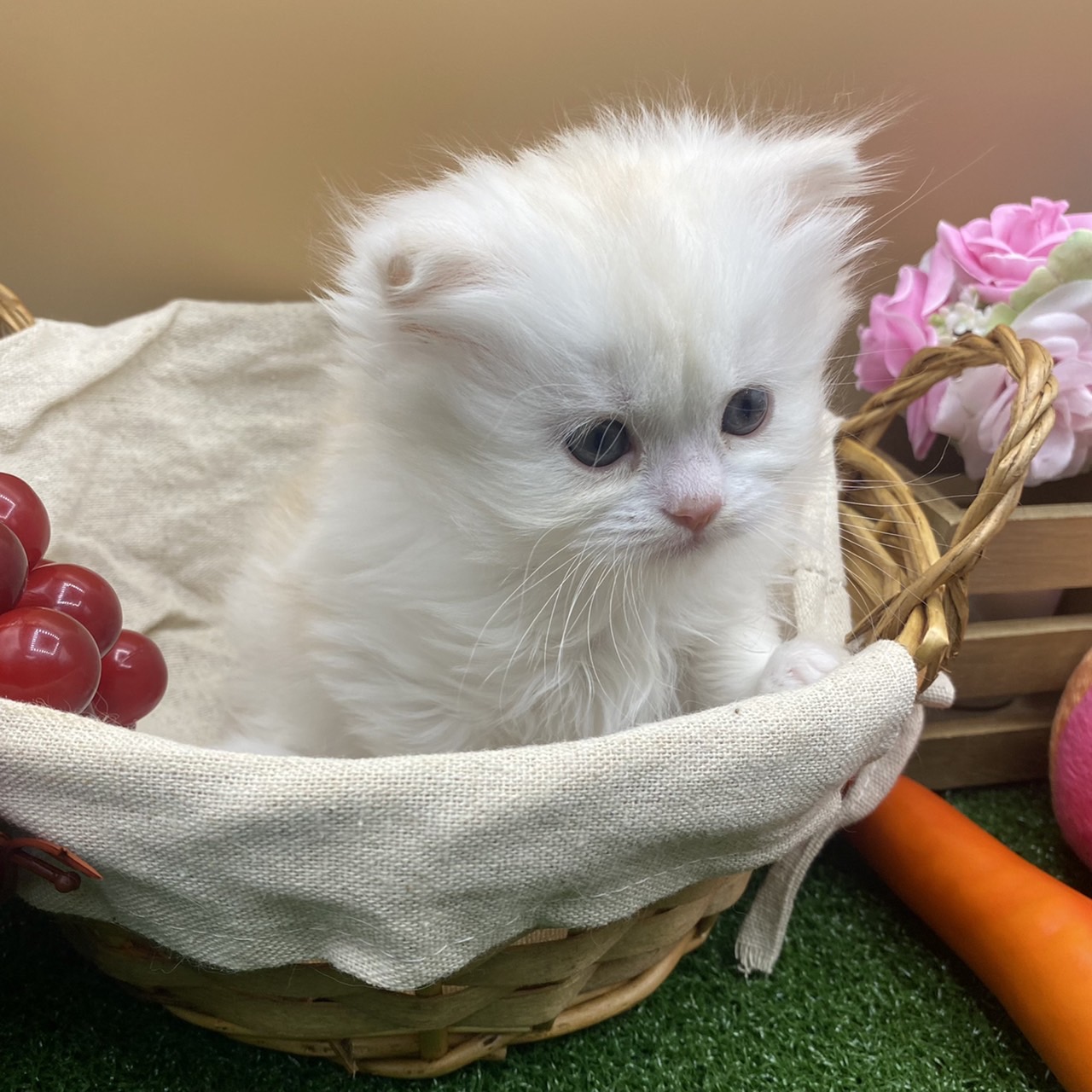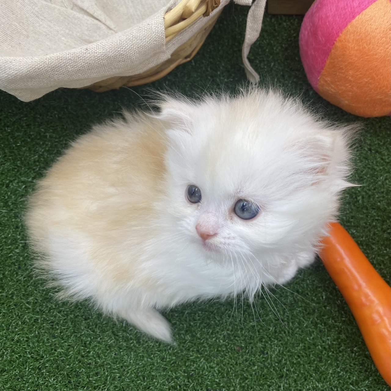 【両親】父親 スコティッシュフォールド クリームタビー&ホワイト 立ち耳 がっちり体型 人懐こい 丸顔 母親 スコティッシュフォールド クリームタビー 丸顔 立ち耳 中毛 マイペース 【性格】物怖じしない、おっとりさん